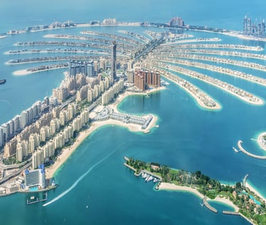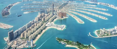 Il s’agit d’un immense archipel, crée artificiellement en forme de 16 palmes avec le luxueux hôtel Atlantis et son immense parc aquatique.