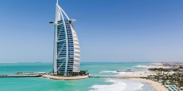 Il s’agit du plus haut hôtel du monde…321 mètres, qui ressemble à la voile d’un bateau, le plus luxueux, décrit comme un 7 étoiles qui ne propose que des suites.