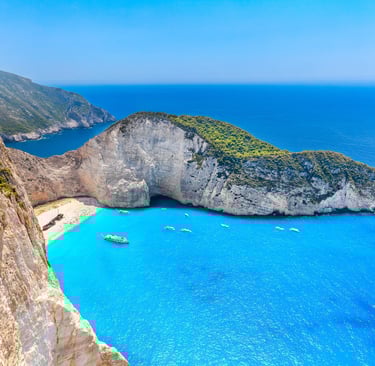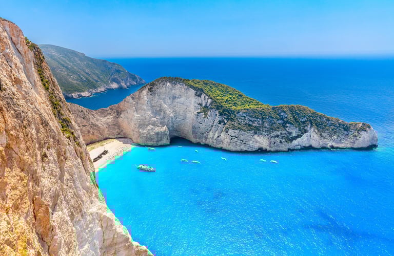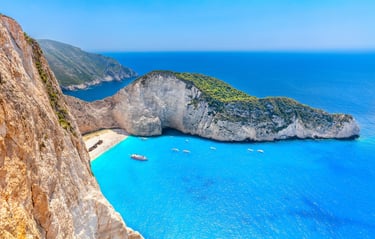 Également appelé baie du Naufrage, la plage de Navagio est une baie isolée en Grèce. Elle se situe à l'ouest de l'île de Zante. Elle est unique pour sa plage de sable fin, les hautes falaises qui l'entourent et son épave de navire. Un incontournable lors de votre voyage, elle a été nommée comme la plus belle plage de Grèce. On rejoint la crique en bateau depuis Porto Vromi, Saint Nikolaos Volimes ou Zakynthos. Durant le voyage, vous découvrirez les nombreuses grottes qui se trouvent autour de l’île. Vous serez éblouis par la beauté de la plage. Privilégiez les mois d'avril à octobre pour vous rendre en Grèce.