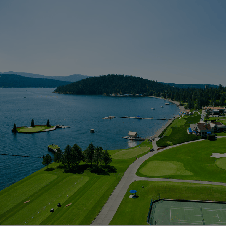 Le Coeur d'Alene Resort Golf Course, situé dans l'État de l'Idaho aux États-Unis, est célèbre pour son île flottante verte. Cette dernière est située à environ 70 mètres de la côte et peut être déplacée grâce à un système hydraulique. Les joueurs doivent utiliser un bateau pour atteindre l'île, qui est accessible uniquement par le trou n°14. Le parcours offre également des vues spectaculaires sur le lac Coeur d'Alene.